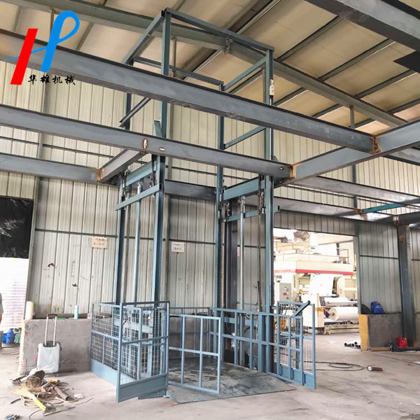 雙跨導軌式升降貨梯,相對于單跨貨梯來說,它的臺面兩側均有導軌,因此具有承載力更大,臺面更大,升降更穩定,使用壽命更長的優點。